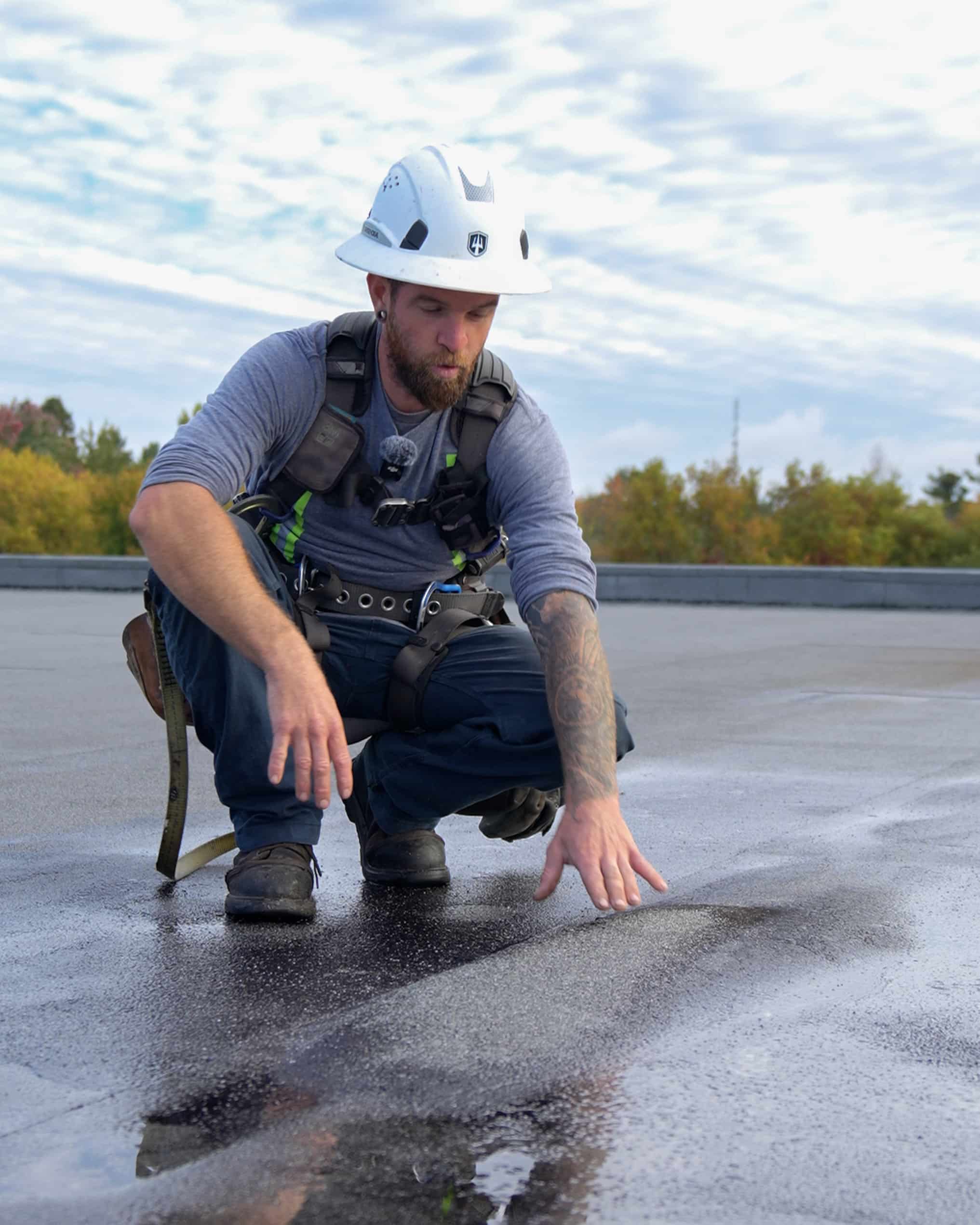 durée de vie de votre membrane et d’éviter des réparations majeures. Notre équipe réalise une inspection complète incluant la vérification de l’état de la membrane, l’inspection des solins, le nettoyage des drains, la détection précoce d’usure et la validation de l’étanchéité du système de toiture.